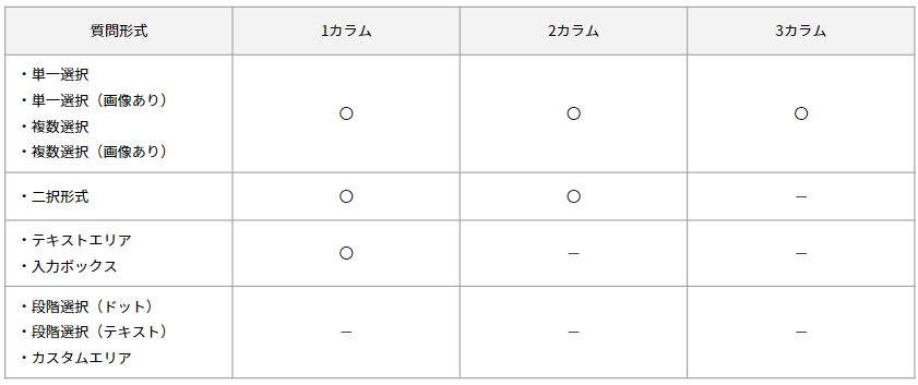 質問形式によって選択できるカラム数が変わります。