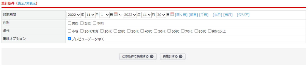 | 対象期間 | 集計対象とする期間を設定します。 |