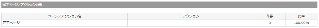 | ページ/アクション名 | 完了ページ、完了アクション(ページ遷移)で設定したページ名を表示します。 |