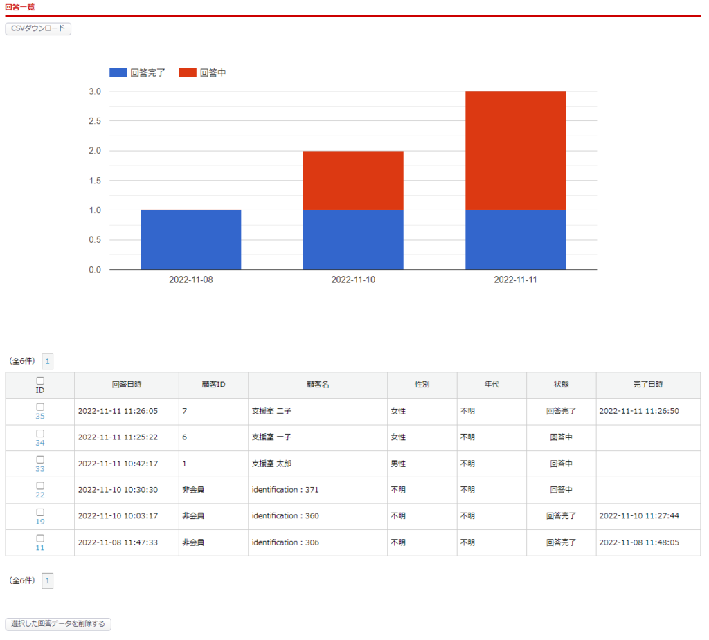 | ID | 回答IDを表示します。 クリックすると、その回答データの詳細が確認できます。 |