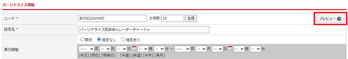 | パーソナライズコード | パーソナライズコードを表示します。 |