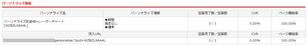 | 流入URL | 広告シナリオ登録で作成した入稿用URL経由でパーソナライズページへ流入してきたときのURLを表示します。 |