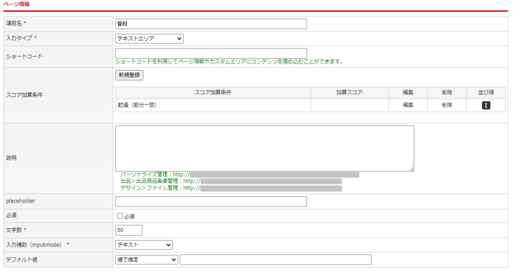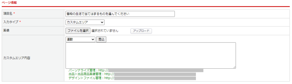 カスタムエリア内容 カスタムエリアの内容を設定します。