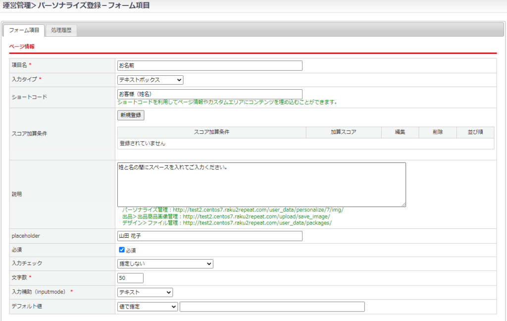 インポートしたときの「説明」や「placeholder」、「必須」などの設定は、