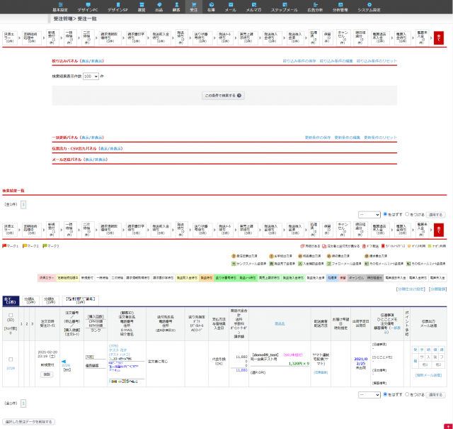 受注登録・受注取込した受注データの詳細は、受注一覧の検索結果一覧にて