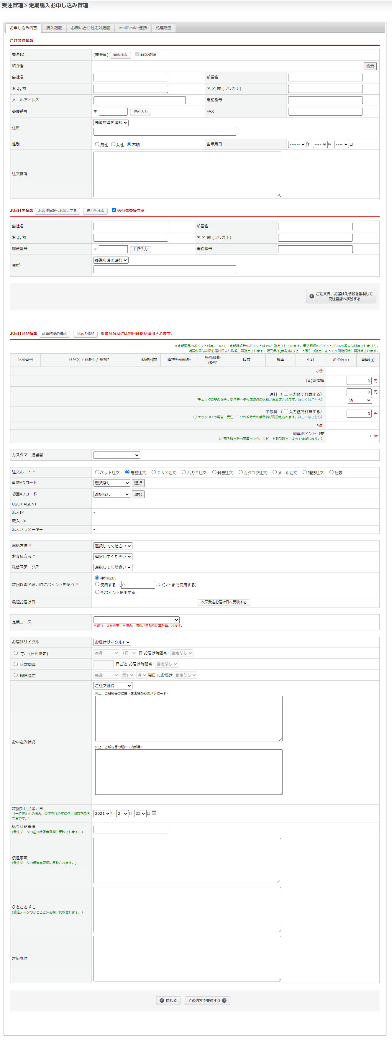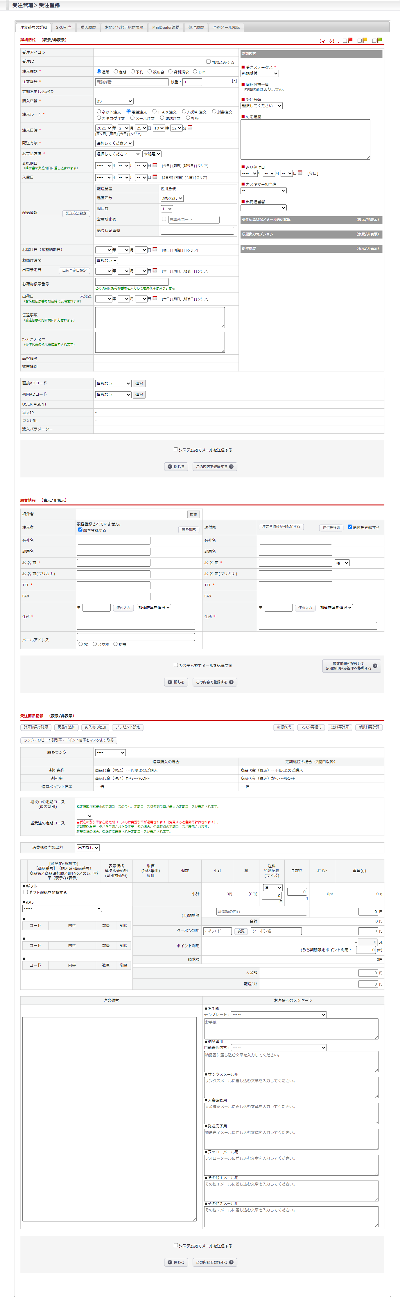 注文の詳細情報、顧客情報、受注商品情報を入力し、新規に受注データを作成します。