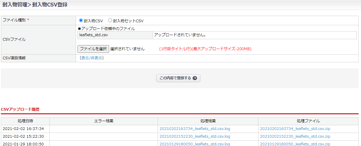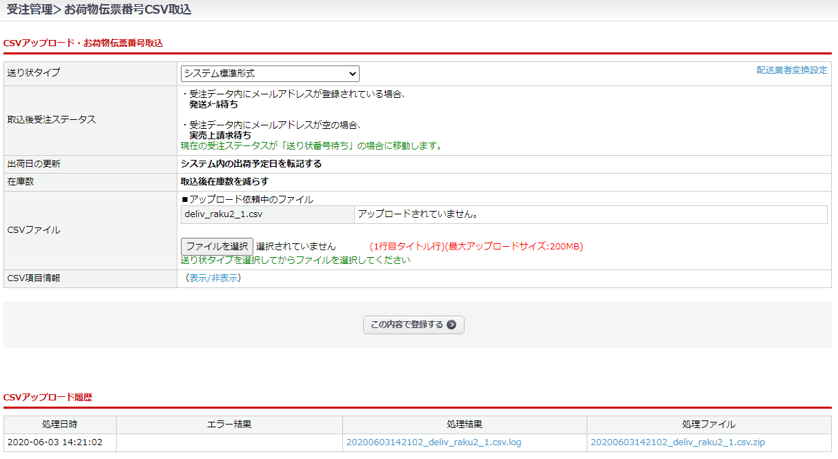 お荷物伝票番号(追跡番号)のCSVによる一括取り込みができます。