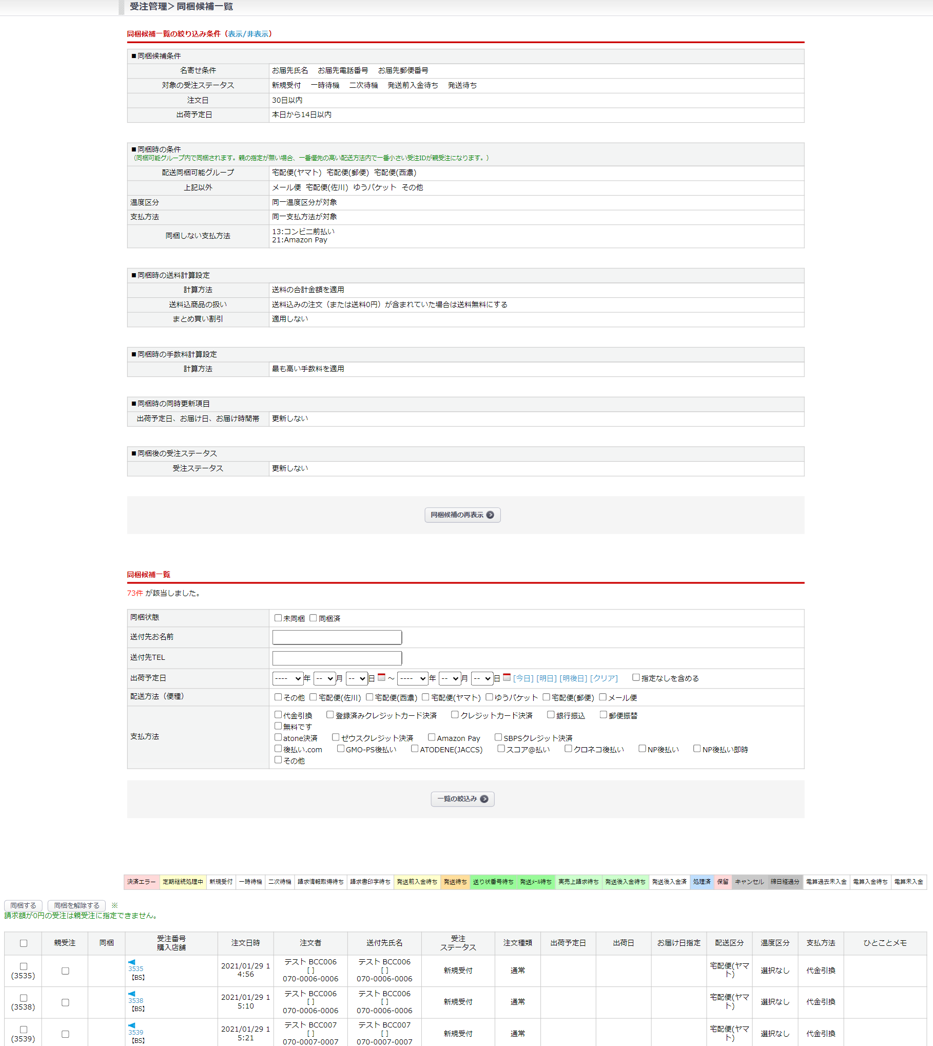 クレジットカード決済を利用した受注の決済状況を一覧で確認する画面です。