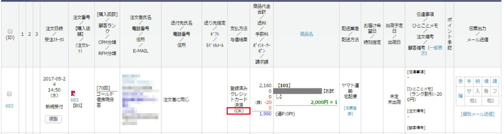 注文完了時に支払方法設定の処理区分に応じて決済処理実行されます。