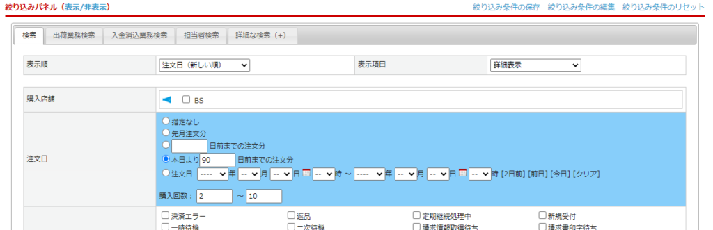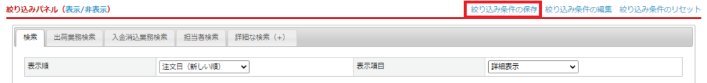 2. 絞り込みパネル右上部にある「絞り込み条件の保存」をクリックします。
