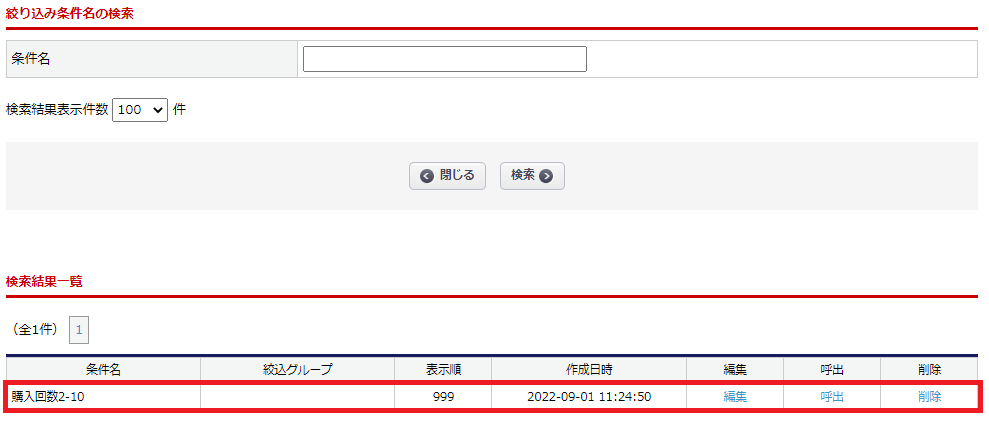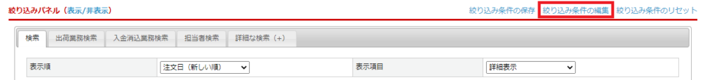 1. 絞り込みパネル右上部にある「絞り込み条件の編集」をクリックします。