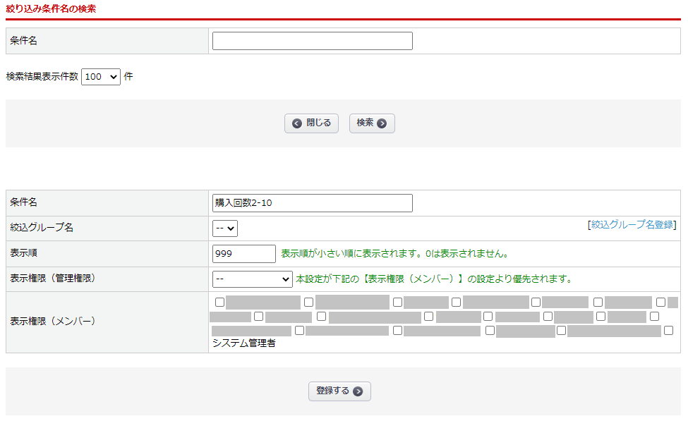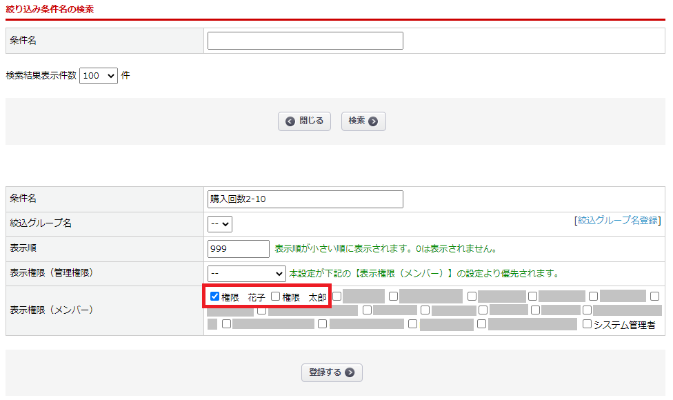 3. 名称、表示順や権限など、変更したい内容を更新して登録します。