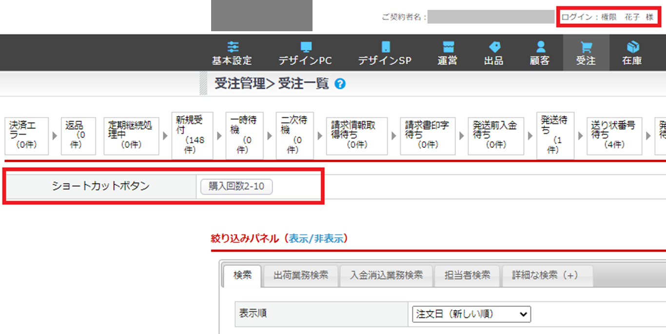 4. 受注一覧を再表示でショートカットボタンの追加を確認します。