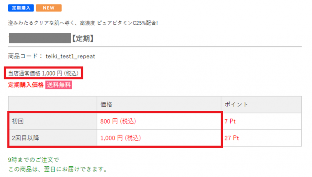 2.定期初回は割引価格、2回目以降はリピート割引を利用して設定