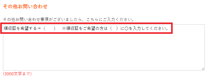 「領収証を希望する⇒( ) ※領収証をご希望の方は( )に〇を入力してください。」