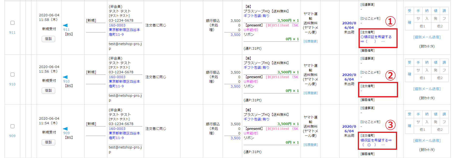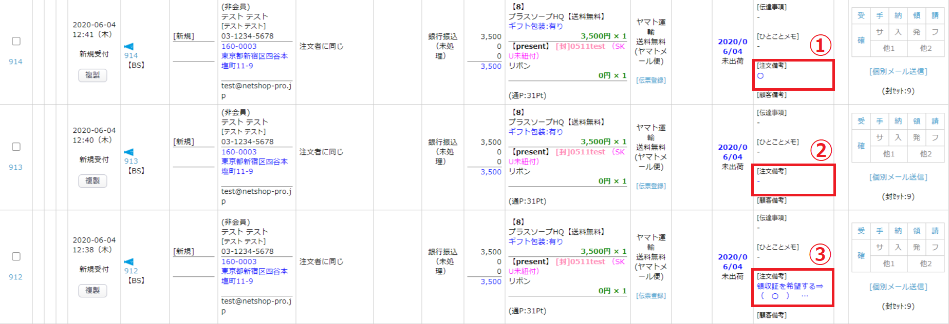 ②注文備考初期値で設定された文言を変更せずに購入
