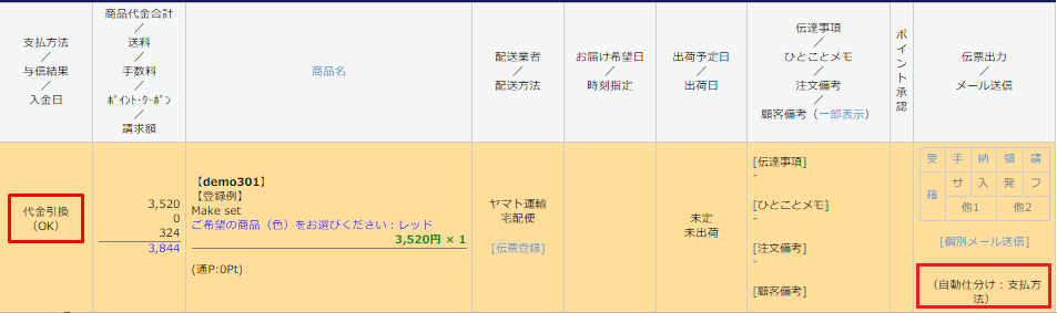 - 受注ステータス仕分け設定は「新規受付(ステータスID:1)」の注文に対して実施されます。