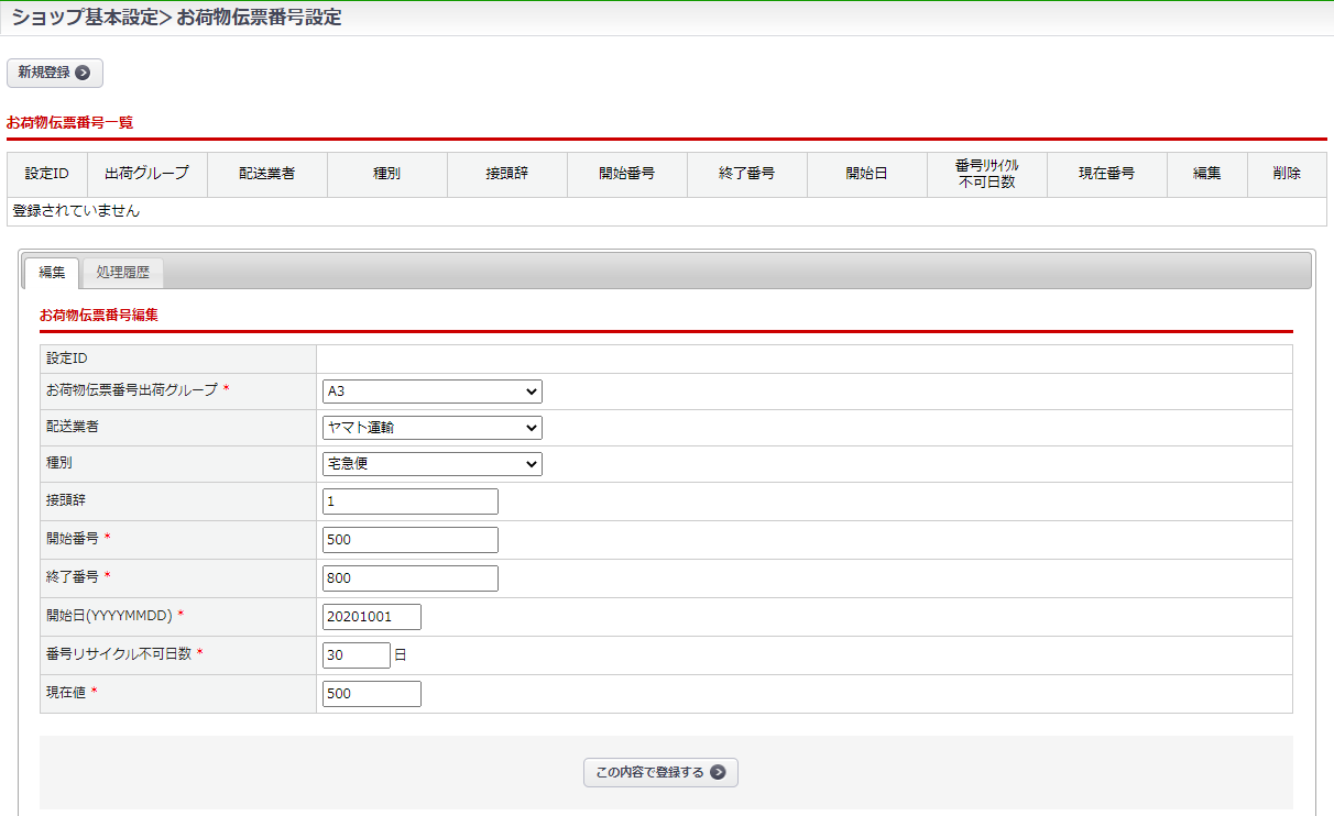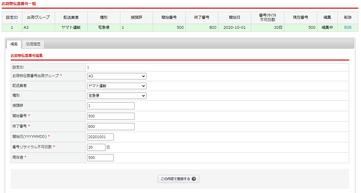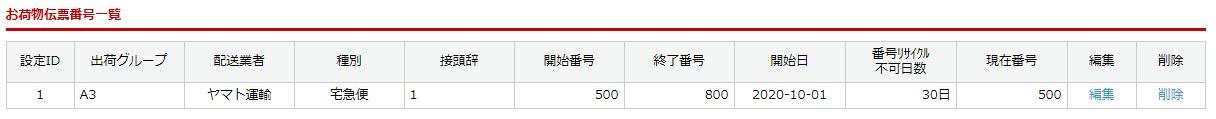 「受注管理:お荷物伝票番号採番グループ」から行えます。