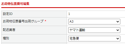 お荷物伝票番号出荷グループ* お荷物伝票番号出荷グループを指定します。