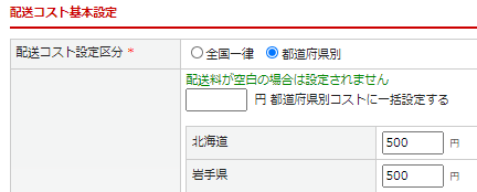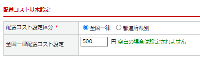配送コスト設定区分と配送コスト設定のテキストボックスに金額を設定します。