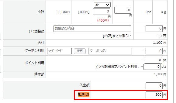 *1:配送コスト基本設定を設定する以前の受注や、管理画面にて受注登録を行った受注が対象です。