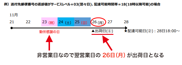 ②出荷可能日+ヤマトマスタパックから取得した最短日で算出
