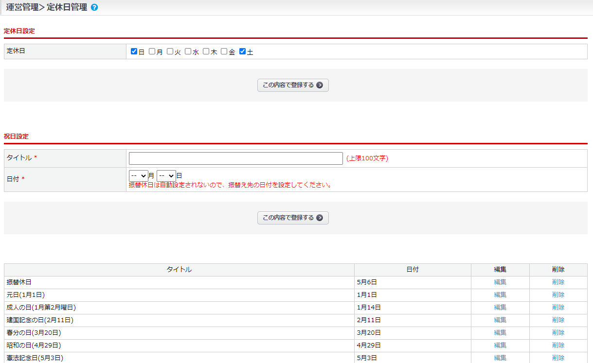 定休日管理