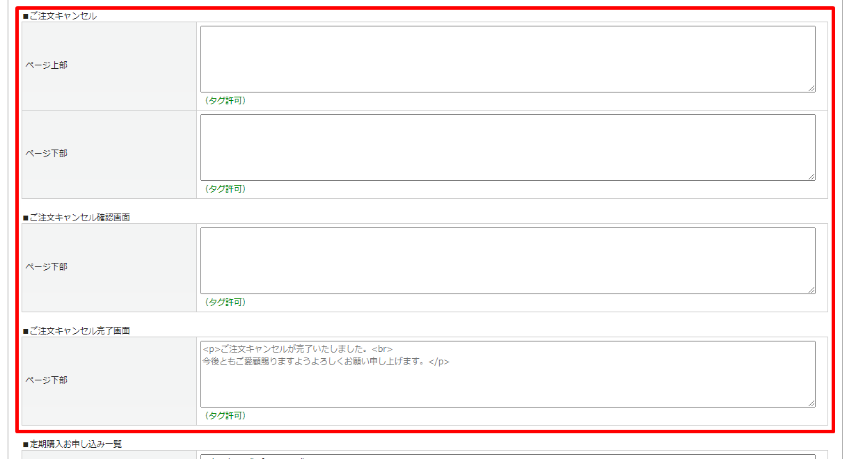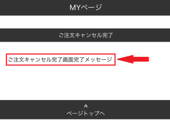 ※「ご注文キャンセル完了画面」には、デフォルトでメッセージが設定されています。