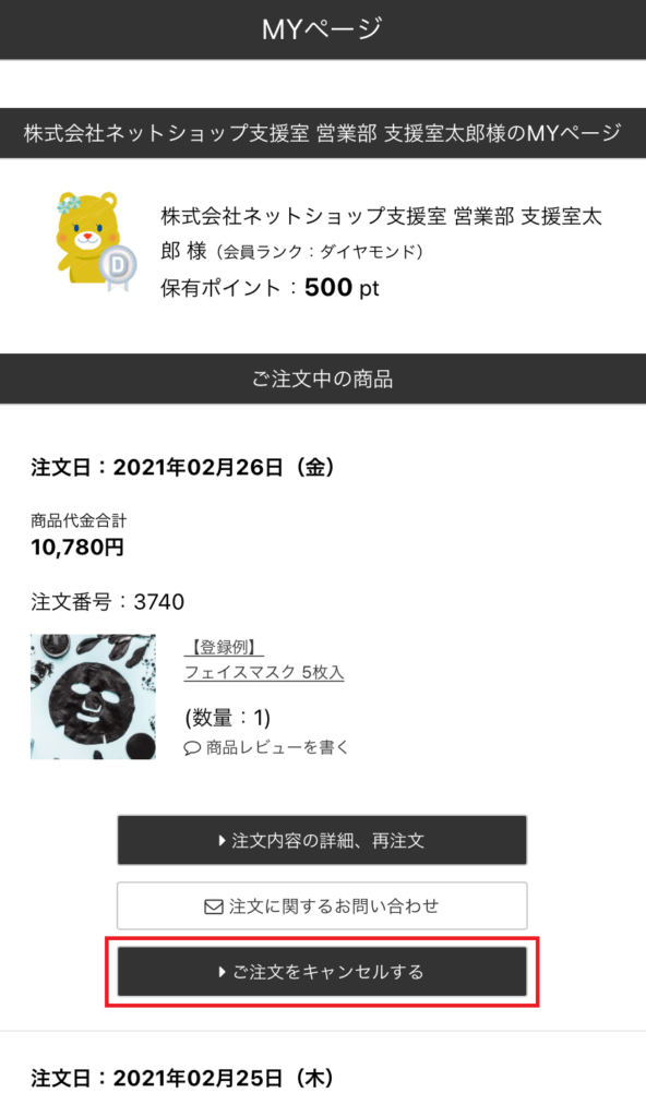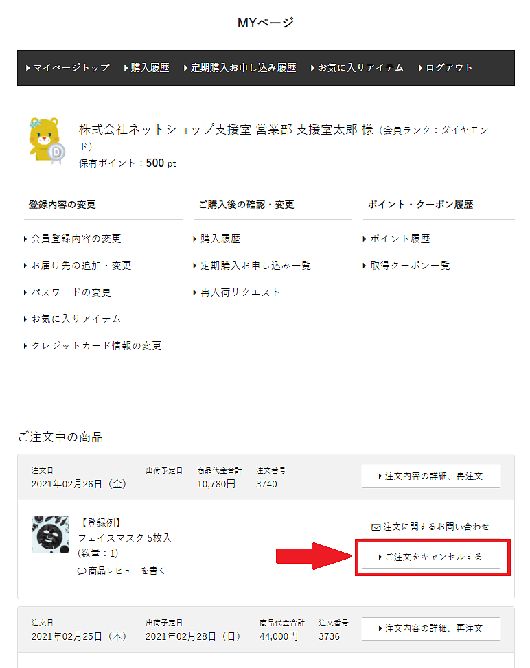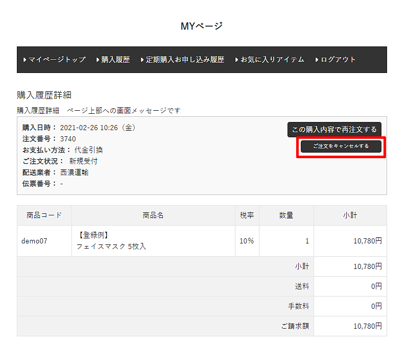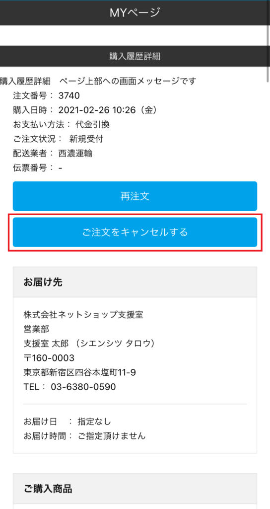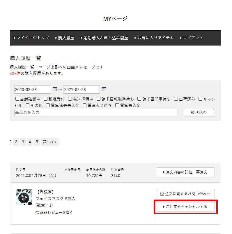 ※こちらの機能は、MYページ注文キャンセル導入時のみ利用できます。