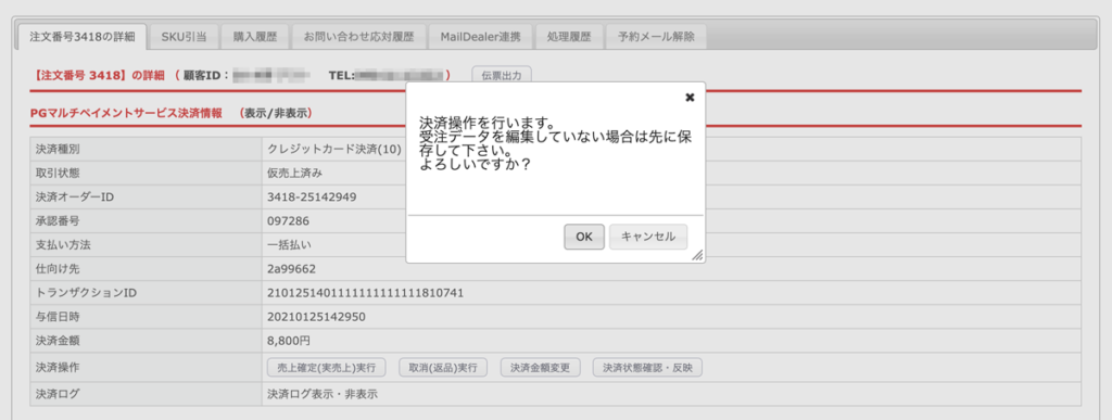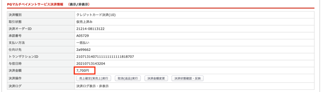 <後払い決済>受注登録画面から金額変更(API連携)を行う場合>