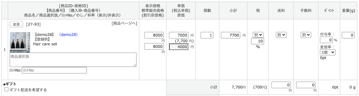 受注データの受注登録画面から金額を変更してください。与信済み注文の金額変更をする場合は、決済金額に変更後の金額を反映する必要があります。