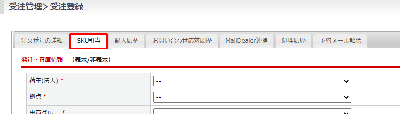 受注商品の発注・在庫に関する情報を登録、編集できます。