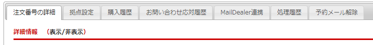 | MailDealer連携 | 受注データに紐づく注文者メールアドレスをもとにMailDealerでの応対履歴の確認が可能です。 ※対象のオプション機能導入時のみ表示されます。 |