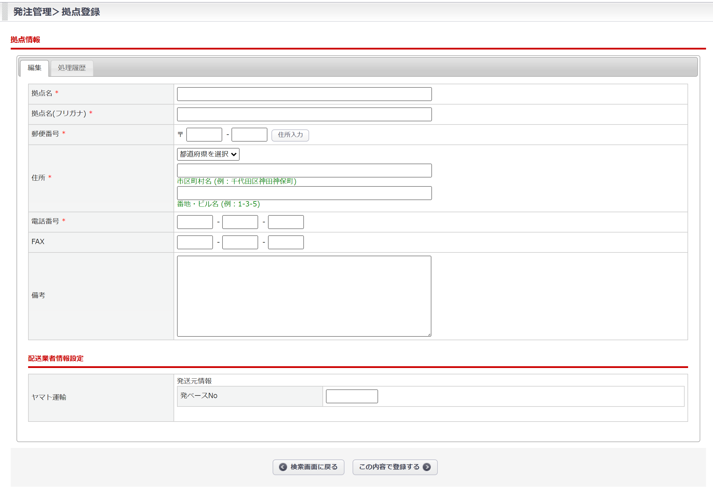 受注>拠点登録