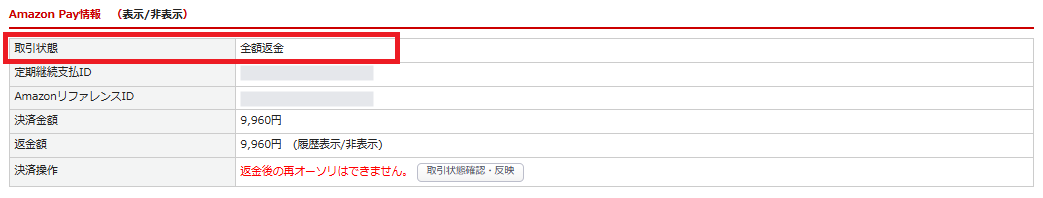 ※返金後の再オーソリはできません。
