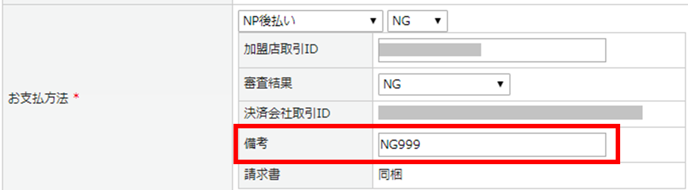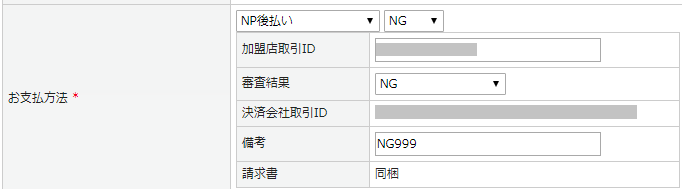NP側の与信がNGになってしまった場合、受注詳細の備考欄にエラーコードを表示しています。