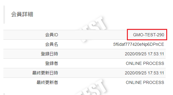 会員ID識別子(GMO-TEST-)と顧客ID(290)を組み合わせた(GMO-TEST-290)が会員IDとして