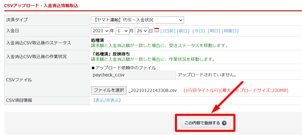 - 同じファイルで取込を複数回処理すると、過入金されたり、減算されすぎたりするのでご注意ください。