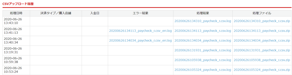 4.CSVアップロード履歴の「エラー結果」欄が空欄であれば