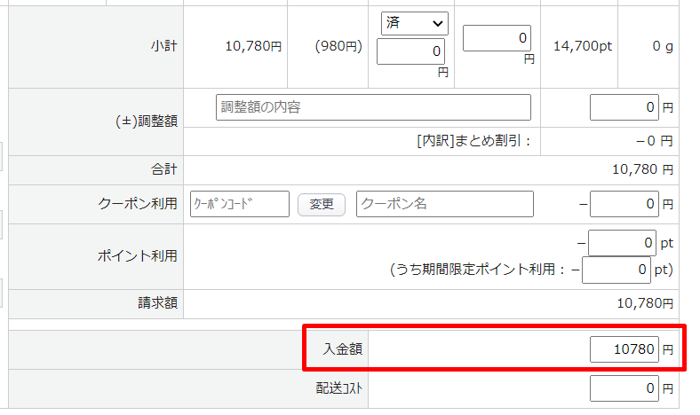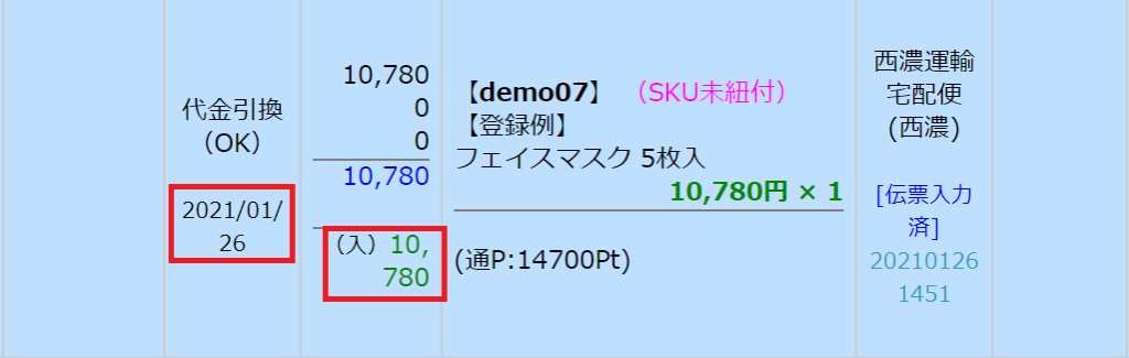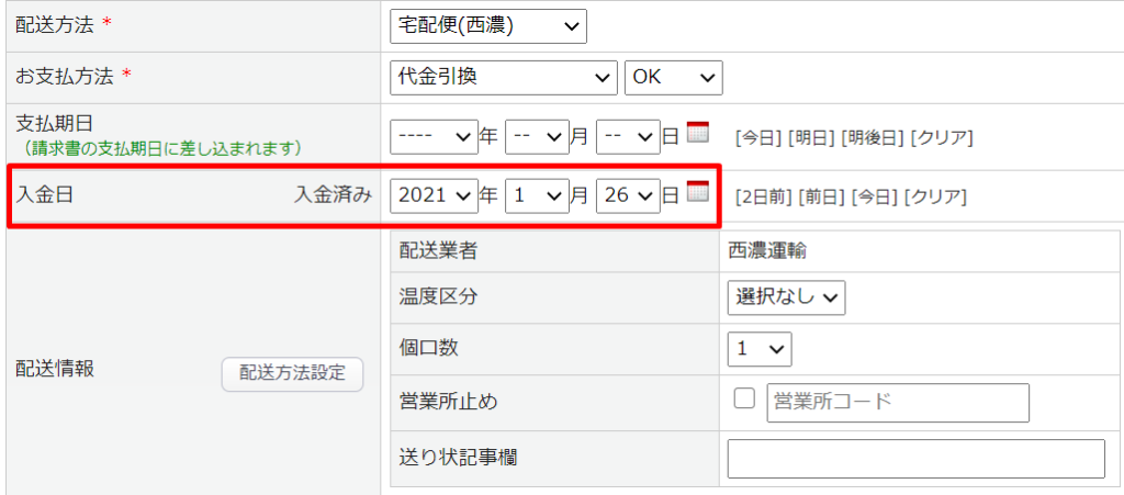 | 入金日 | 入金消込の対象となった受注データの入金日として セットする日付を指定してください。 |