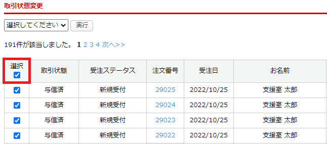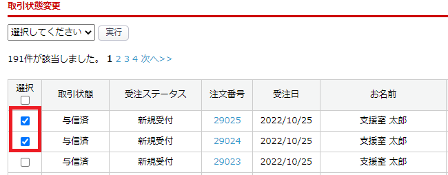 3.抽出された受注の中で処理の対象とするものにチェックを入れます。
