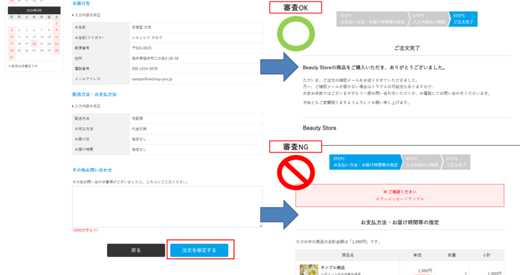 審査対象に設定されているお支払方法で商品が購入された場合、注文確定後、自動的にO-PLUXに連携されます。