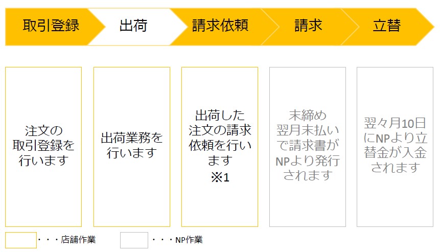 ※1 出荷日、売上日、お届け日のいずれかを請求発行基準日として NP 掛け払いに連携します