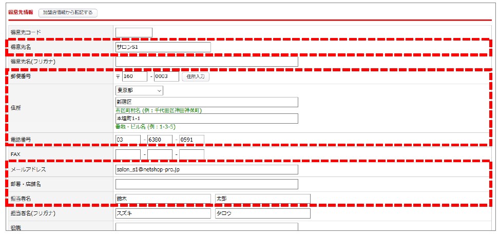 【設定画面】 加盟店管理>加盟店管理>各加盟店の「編集」>得意先情報タブ