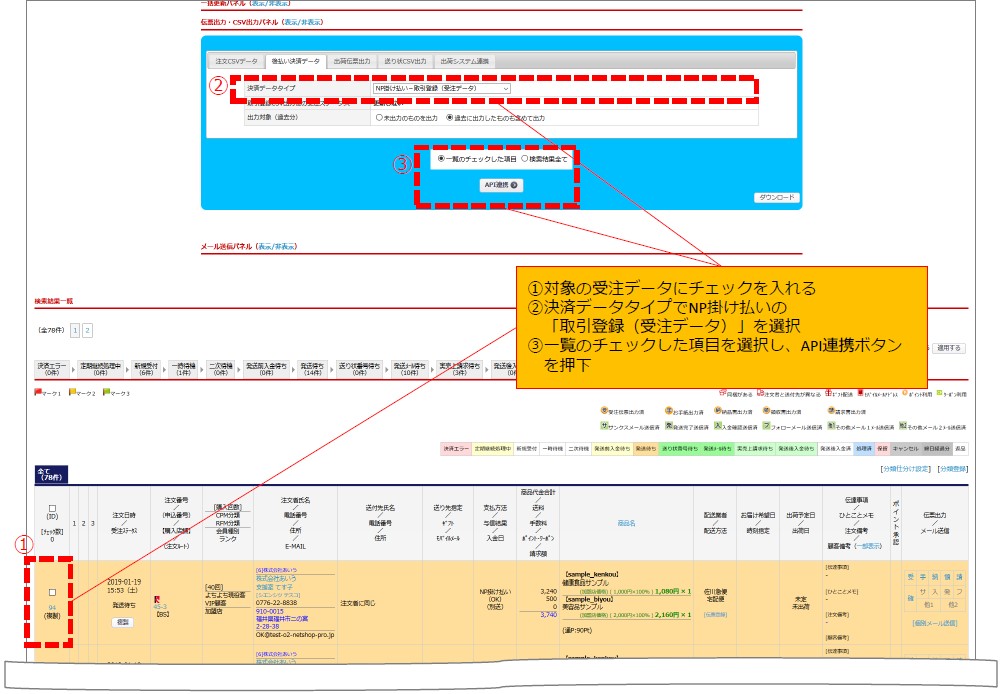 受注一覧から一括取引登録(CSV連携)を行う場合