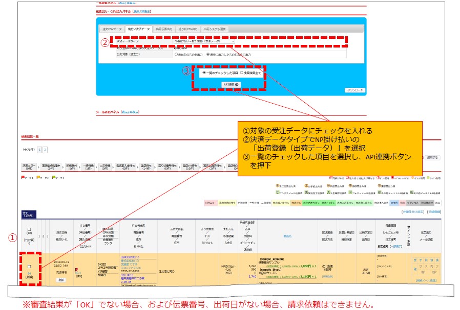 ・NP掛け払い決済の処理の流れ(例:審査OKの場合)