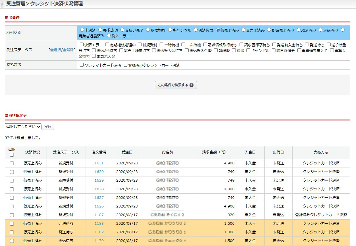 - クレジットカード決済の状況を一括で確認したい