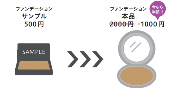 例えば、サンプル請求から本品購入へと誘導している店舗様の場合、