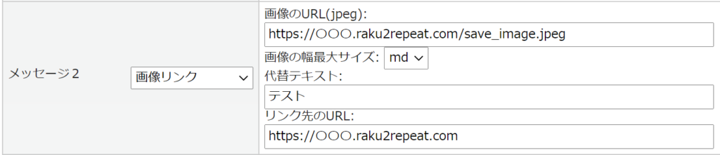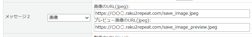 画像形式でのメッセージの送信設定です。画像ファイルのURL(jpeg)を入力してください。