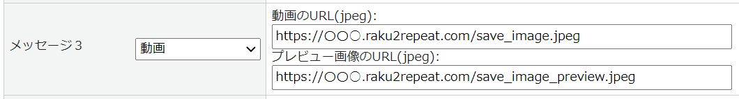 動画形式でのメッセージの送信設定です。動画ファイルのURL(jpeg)を入力してください。